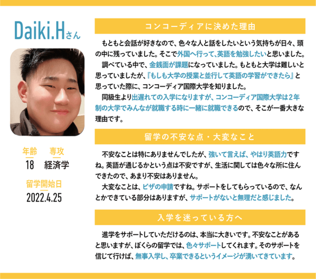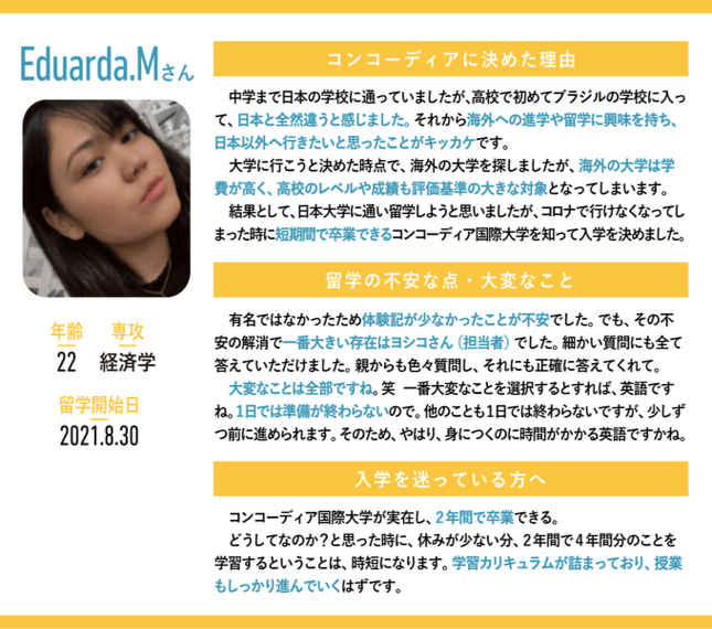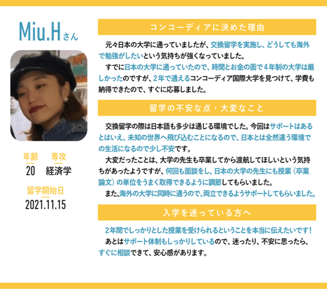 通常の海外大学は4年間で卒業しますが、 コンコーディア国際大学はその半分の2年間で卒業できるので、余った時間を有効に活用できます。