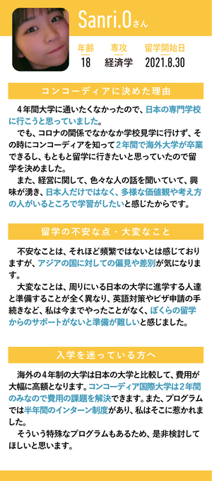 ※ご要望を伺ったうえで、より希望に沿った進路情報をお伝えするために、コンコーディア国際大学以外の進路のご提案をする場合もございます。