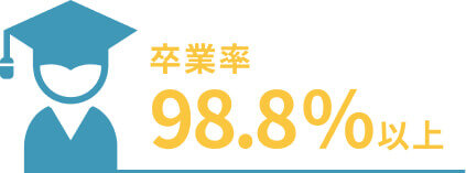 一般的な海外大学の卒業率は、55%と言われています。 コンコ―ディア国際大学は徹底的に大学で必要となる課題・論文対策をチューターと一緒に進めていくため、98.8%以上の人が卒業しています。